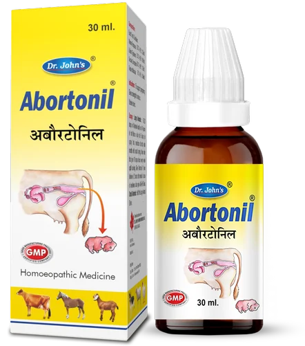 Large Animals: 15-20 drops of Abortonil orally on 1/4 piece of roti thrice a day for 5 days (or spray 1 ml. medicine directly into mouth with small syringe), then after that give 10 drops every week uptill calving.Give Abortonil 1 hour before or 2 hours after meals. In case of weakness also give Alfa-Pet Tonic.