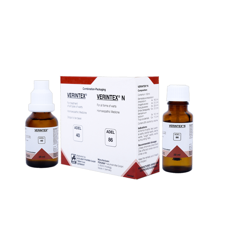 Adel 40+86 Verintex is a homeopathic combination traditionally associated with the management of warts, including juvenile, plantar, senile, vulgar, and those surrounding the nails. It is referenced in homeopathy for skin regeneration and relief from irritation caused by persistent wart growths. Considered supportive for overall skin health, it addresses both external symptoms and internal susceptibility.