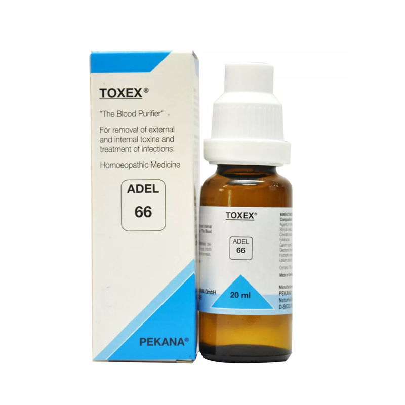 ADEL 66 Toxex Drop is a homeopathic preparation traditionally associated with the elimination of toxins and cleansing of the body. It is referenced in homeopathy for supporting detox from environmental pollutants, alcohol, drugs, heavy metals, and metabolic waste. Considered supportive in stimulating the lymphatic system, urinary pathways, and mucous membranes, it is also linked with infections, septic conditions, and immune weakness.