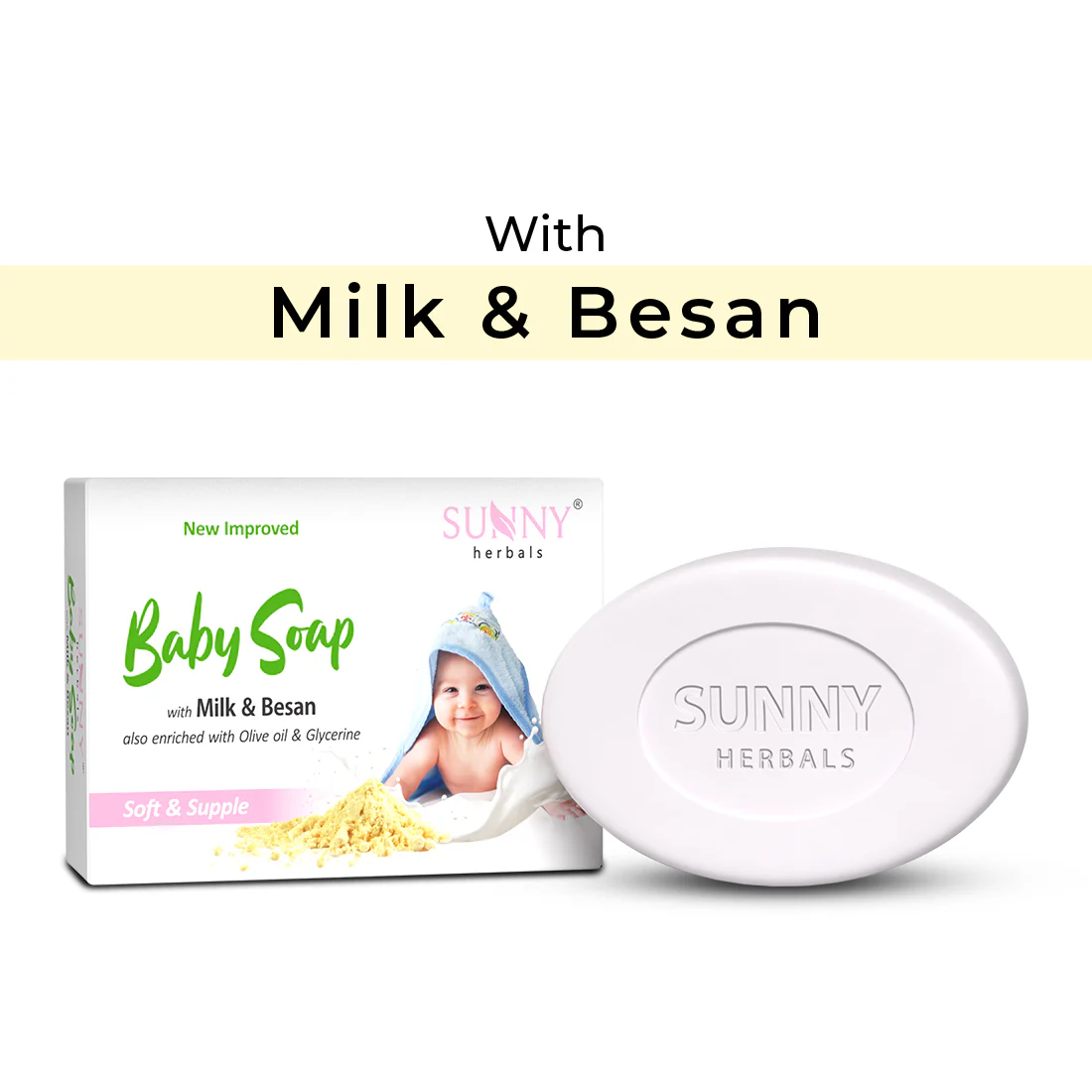 Baby Soap With Milk & Besan is a gentle, all-natural cleansing bar designed to support softness, moisture, and daily skin comfort, enriched with the nourishing benefits of Milk, Besan, and Olive Oil.