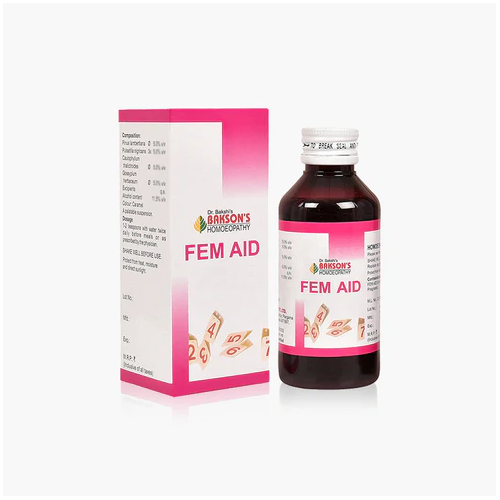 Bakson FEM AID Suspension is a homeopathy OTC women’s health formulation traditionally referenced for supporting menstrual regularity, uterine tone, and relief from menstrual discomfort, helping maintain balance and comfort throughout the menstrual cycle.