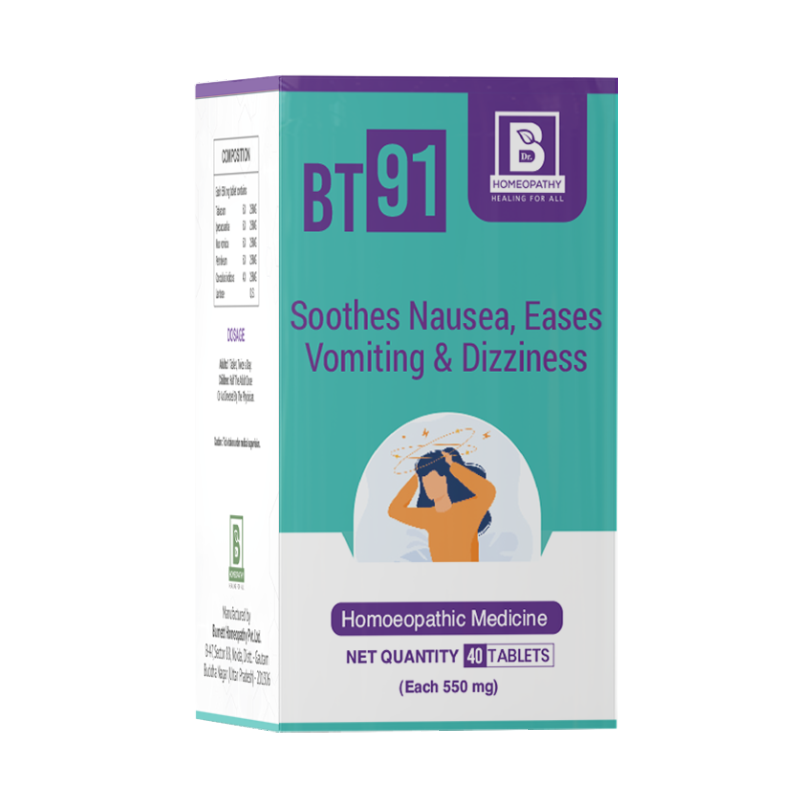 Summary: BT91 is a Homeopathy OTC medicine for motion sickness, nausea, vomiting, and related travel discomfort. Use as per the direction on the product label or as directed by your doctor.
