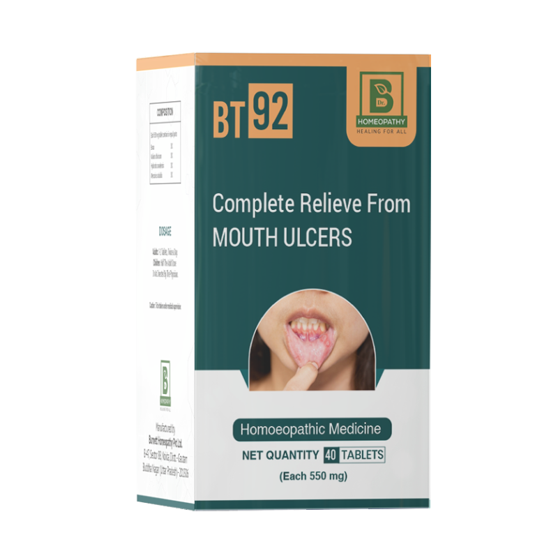Summary: BT92 is a Homeopathy OTC medicine for mouth ulcers, gum boils, and aphthous lesions. Use as per the direction on the product label or as directed by your doctor.