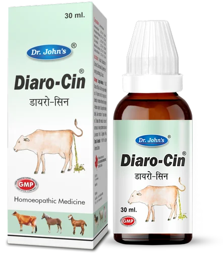 Large Animals: 15.20 Drops of Diaro-cin to be given orally on 1/4 piece of roti ( or spray 1 ml. directly in mouth with small syringe) 4 times a day for 3 days then thrice daily. Give medicine 1 hour before or 2 hours after meals. In case of anorexia or liver problems also use Livoboost Vet & Digesto Plex.