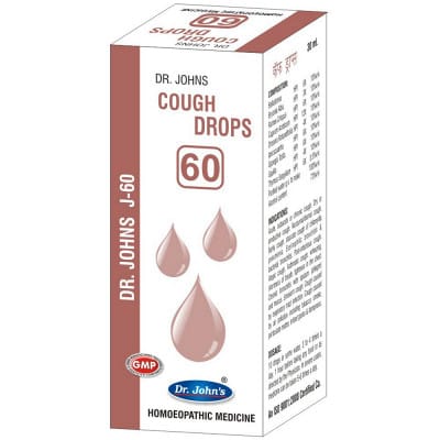 Product Description: Dr John J 60 Cough Drops is a homeopathic remedy formulated to provide relief from a variety of cough symptoms, including dry, wet, and spasmodic coughs. The blend of natural ingredients works to calm the respiratory system, ease irritation in the throat, and reduce the frequency and intensity of coughing. It is particularly effective for relieving stubborn coughs that disrupt sleep and daily activities, offering a natural alternative to conventional cough syrups.