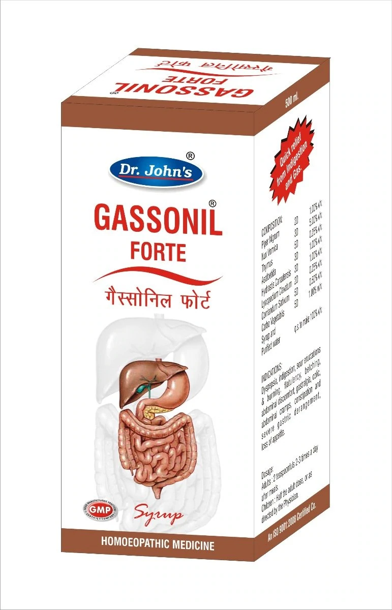 Dr Johns Gassonil Forte Syrup is an excellent treatment for stomach and intestinal problems. This medicine helps in treating the burning sensation and reduce hyperacidity. It is beneficial in treating all stomach related issues and effective for people who are suffering from indigestion. It also proved to be beneficial in treating burning sensation on the chest and also useful in flatulence.