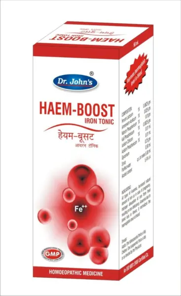 Product Description: Dr. Johns HAEM-BOOST IRON TONIC is specially formulated to support healthy hemoglobin levels and effectively address iron deficiency. This potent blend combines iron, folic acid, and vitamin B12 to enhance red blood cell production, combat fatigue, and revitalize your energy. Ideal for individuals recovering from illness or those experiencing low energy levels, this tonic is your go-to solution for restoring vitality and promoting overall health.