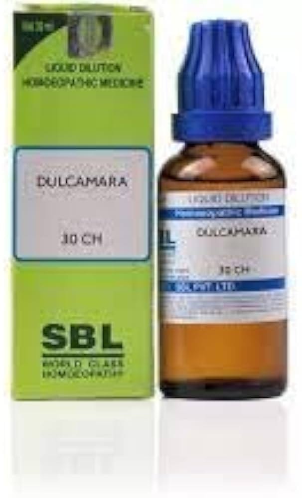 - Dulcamara produces catarrh of the stomach, intestines, nose, eyes, ears, and inflammatory conditions of the skin with eruptions.